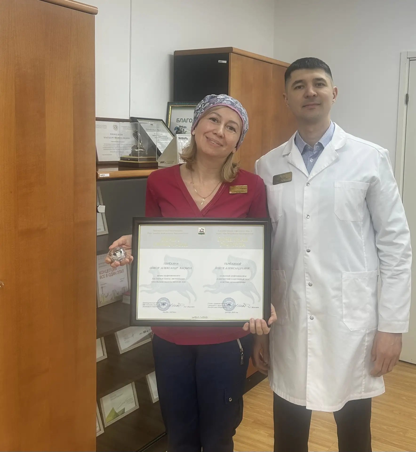+7 (347) 234-31-52Первый рабочий день 2026 года начался с приятных событий: награждения медицинской сестры Терехиной Олеси Александровны Почетной грамотой Администрации городского округа город Уфа за добросовестный, плодотворный труд в системе здравоохранения.